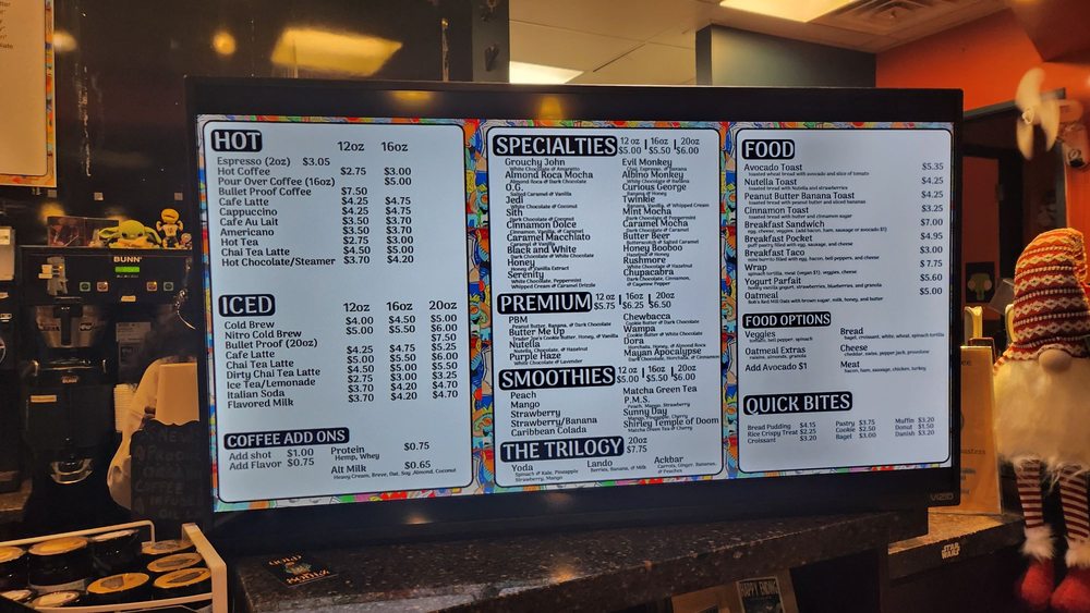 The menu offers a fun and diverse range of options, from their breakfast sandwiches starting at just $4.00 to delectable donuts priced at $1.30. Coffee enthusiasts will be thrilled with choices like the **Iced O.G.** and the renowned **nitro pour**, both highly praised by regulars. For those seeking healthier options, their **Yoda Smoothie** packs a nutritious punch with spinach and kale.